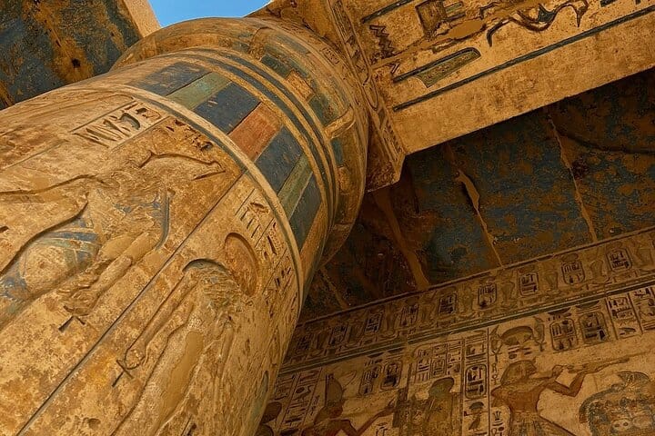 In the Valley of the Kings, learn about burial beliefs, afterlife rituals, and hidden symbolism. At the Tombs of the Nobles, discover colorful scenes of agriculture, music, and family life rarely included in standard tours. Medinet Habu completes the journey with powerful reliefs showing kingship, war, and authority.