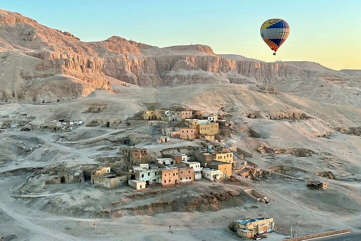 Experience the best of Luxor with this self-guided private tour, including a shared hot air balloon ride, West Bank exploration, and private felucca sail. Begin your day with breathtaking views of the Nile and Luxor from the balloon (children under 6 not permitted)